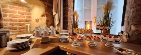 Grande Coffee to kawiarnia umiejscowiona w sercu Torunia – Starym Mieście. Jest to idealna lokalizacja na organizację imprez okolicznościowych, takich jak chrzciny, przyjęcia urodzinowe lub imieniny. Wnętrze naszej sali bankietowej harmonijnie łączy zabytkową architekturę XIII-wiecznej kamienicy z nowoczesnymi akcentami, co tworzy przestrzeń podkreślającą wyjątkowy charakter uroczystości. Dzięki temu ważne imprezy okolicznościowe w Grande Coffee stają się niezapomnianymi chwilami celebracji.